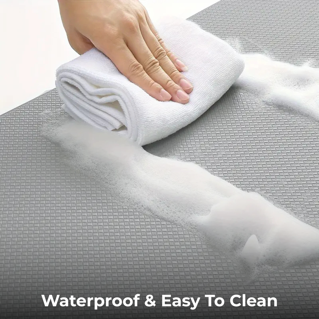 Our Kitchen Mat has a waterproof and oil-proof surface that stops spills from seeping through, protecting your floors from stains, grease, and moisture damage. It’s perfect for busy households - just wipe it clean and you're done.